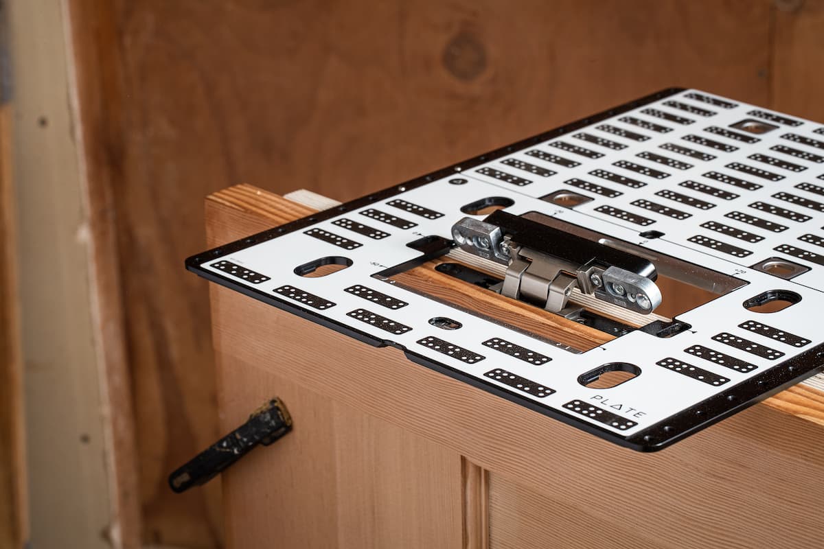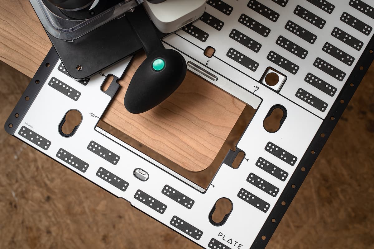 Mit Plate hast du eine Vorrichtung für alle deine Arbeiten. Perfekt für das Einlassen unterschiedlicher Beschläge, zum Erstellen von Einlegearbeiten sowie Lochreihen im System 32 und mehr.