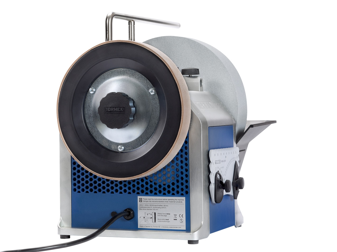 Das charakteristische Tormek-Antriebssystem wurde auch in diesem neuen Modell umgesetzt. Das effiziente System erhält auch bei Volllast eine konstante Drehzahl aufrecht - ein einzigartiges Merkmal der TORMEK-Schleifmaschinen. Der TORMEK Originalschleifstein SG-250 schleift alle Stahlarten, selbst HSS. Der leistungsstarke AC-Motor ist für den Antrieb des Schleifsteins im Dauerbetrieb ausgelegt.