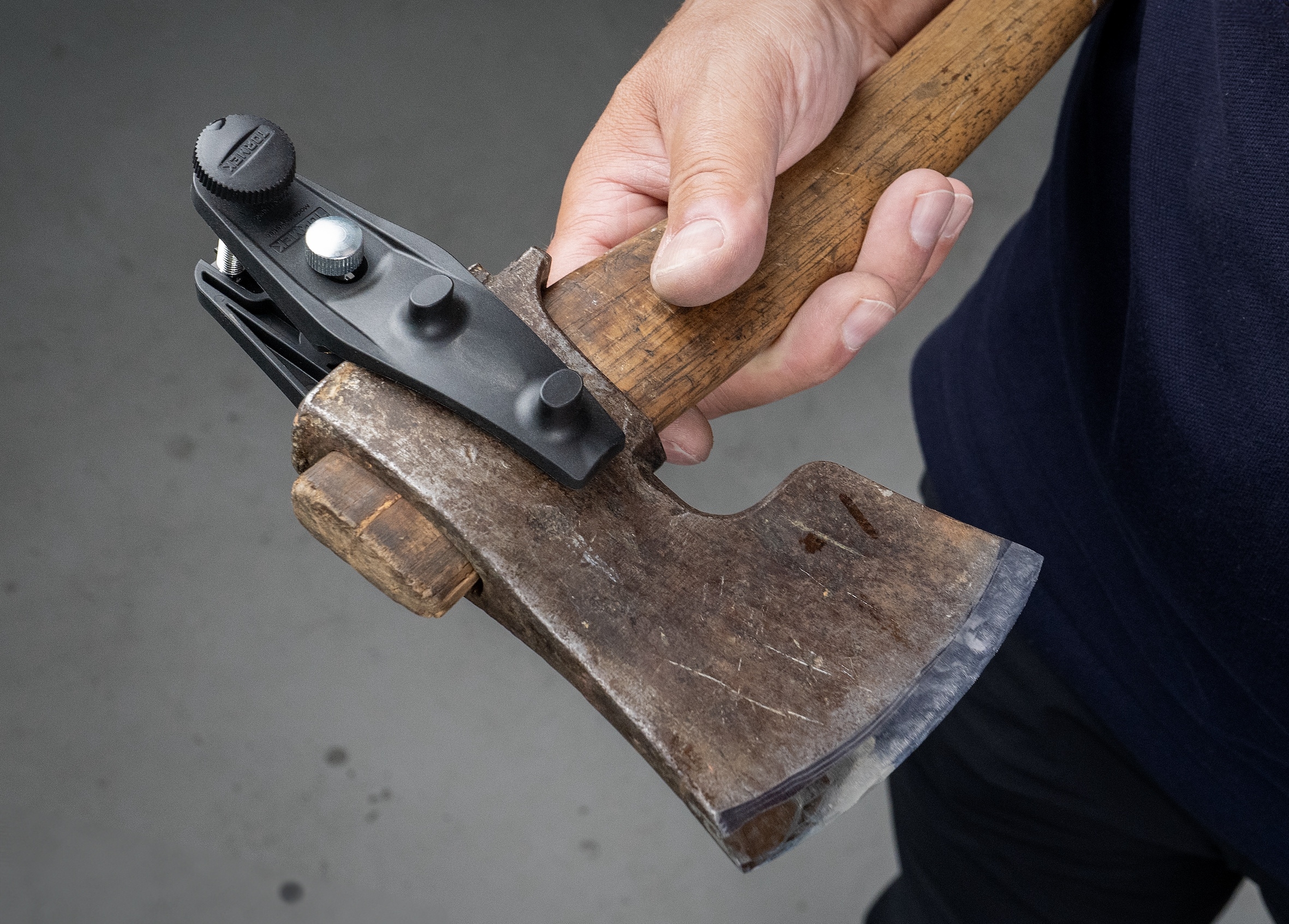 Sie werden überrascht sein wie scharf Äxte aller Art und Form mit der Tormek Vorrichtung für Äxte AX-40 geschliffen werden können. Die Vorrichtung klemmt den Kopf der Axt sicher und ermöglicht ein einfaches, symetrisches und präzises Schärfen mit konstantem Schneidenwinkel.