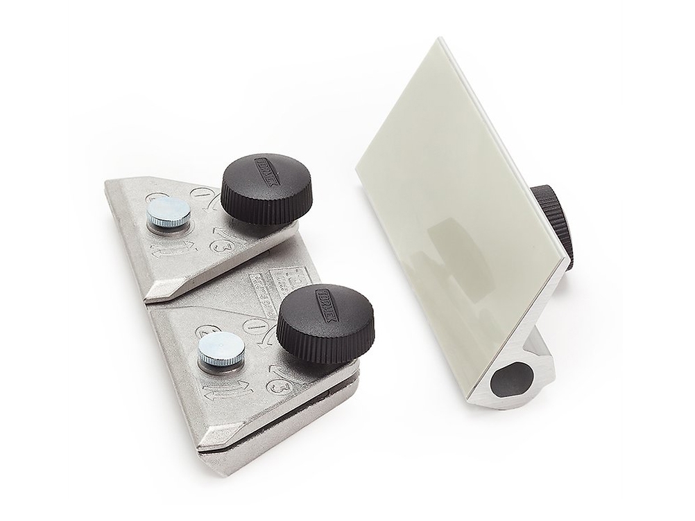 Die Scheren werden in einer Halterung montiert, die frei auf einer Stützplatte aufliegt. Der Schleifwinkel kann so eingestellt werden, dass der vorhandene Schneidenwinkel exakt reproduziert wird. Häufig hat eine der Klingen der Scheren (manchmal auch beide) eine leicht konvexe Form. Dank der Konstruktion der Tormek-Vorrichtung können Sie der individuellen Form jeder Klinge folgen und so erhalten so ein perfektes Schleifergebnis.