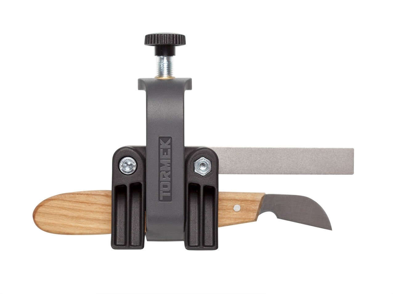 Die neue Halterung wird zusammen mit der Tormek Schleifvorrichtung SVM-45 benutzt.