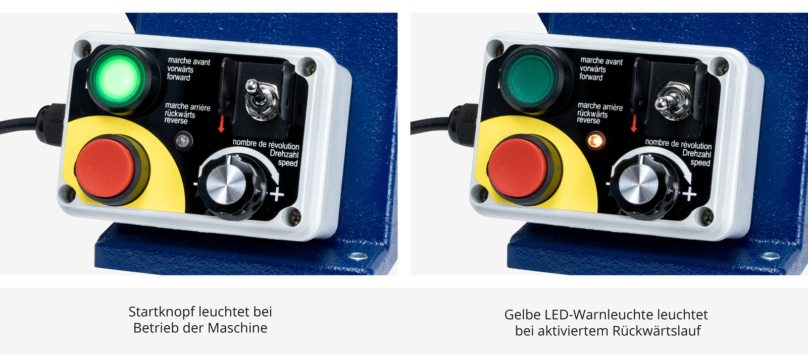 - Inklusive Hauptschalter und Schalter für Vorwärts-/Rückwärtslauf