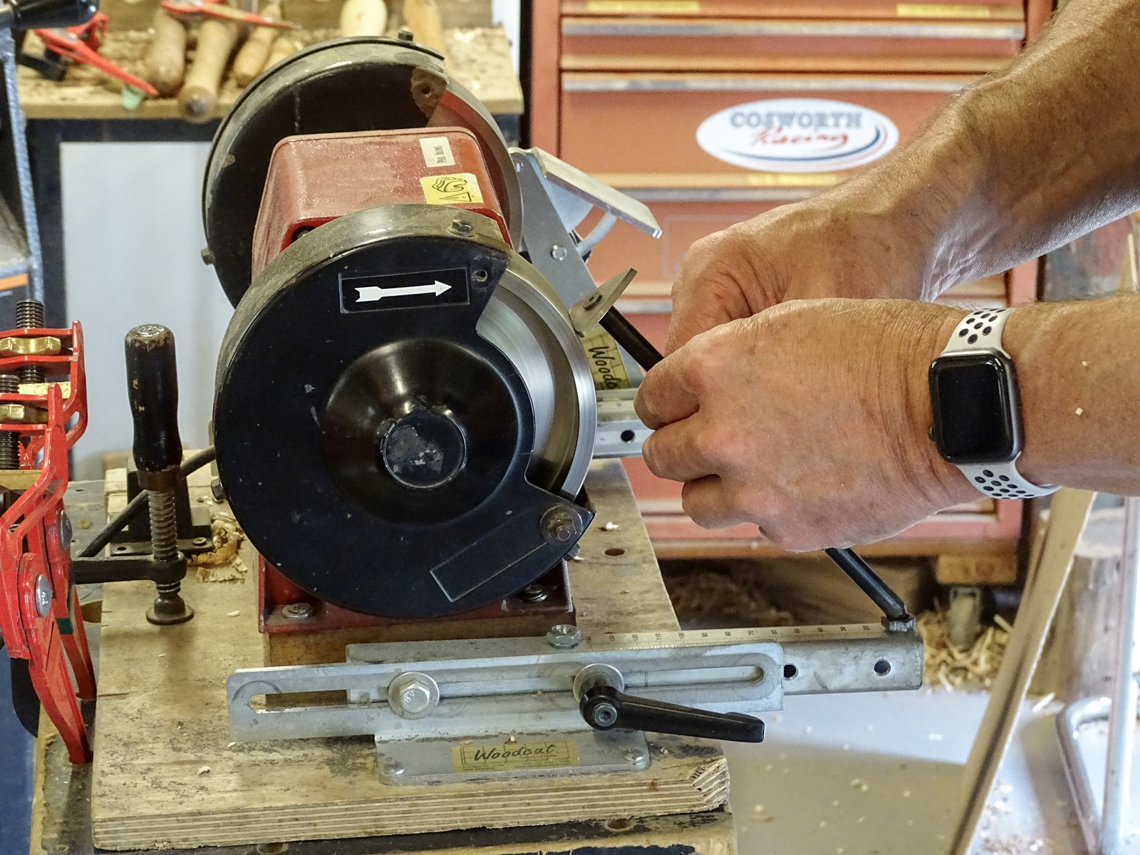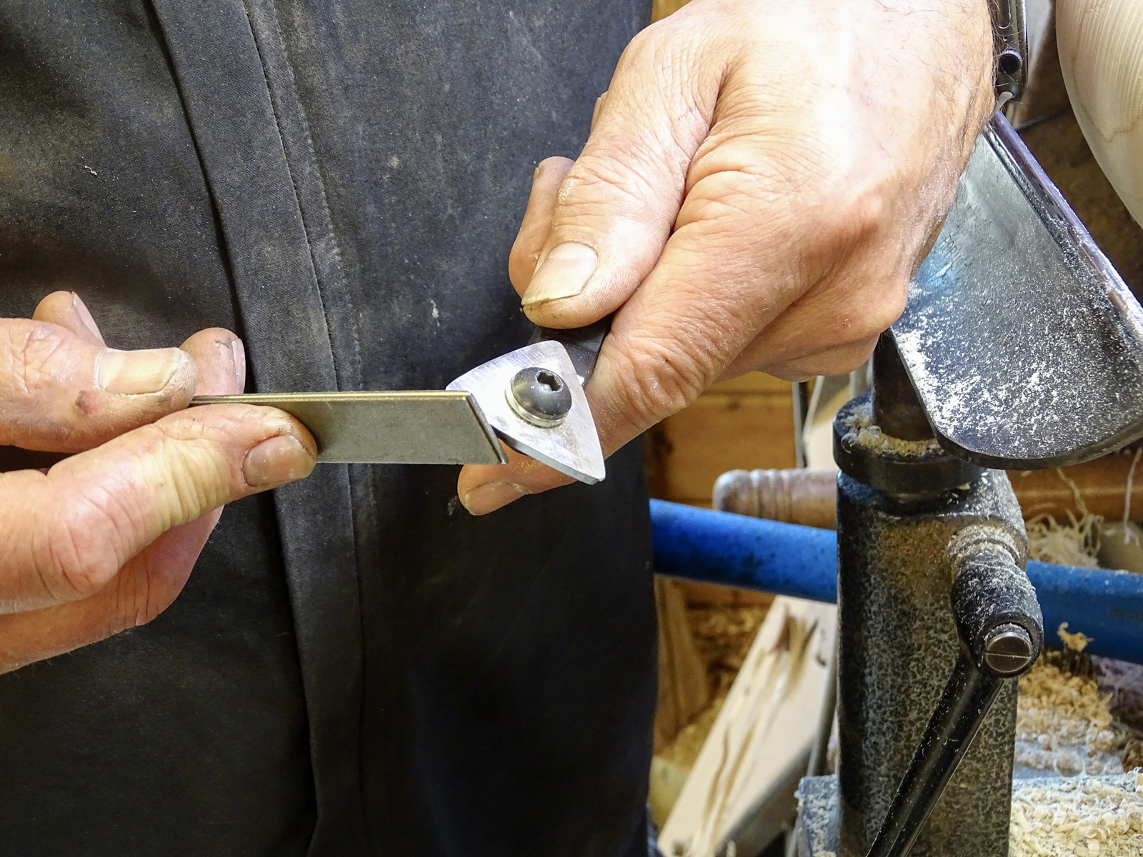 Der Irons Shear Scraper kann mit Nasschleifmaschinen, Diamantfeilen oder Langsamläufern mit CBN-Scheiben geschärft werden.