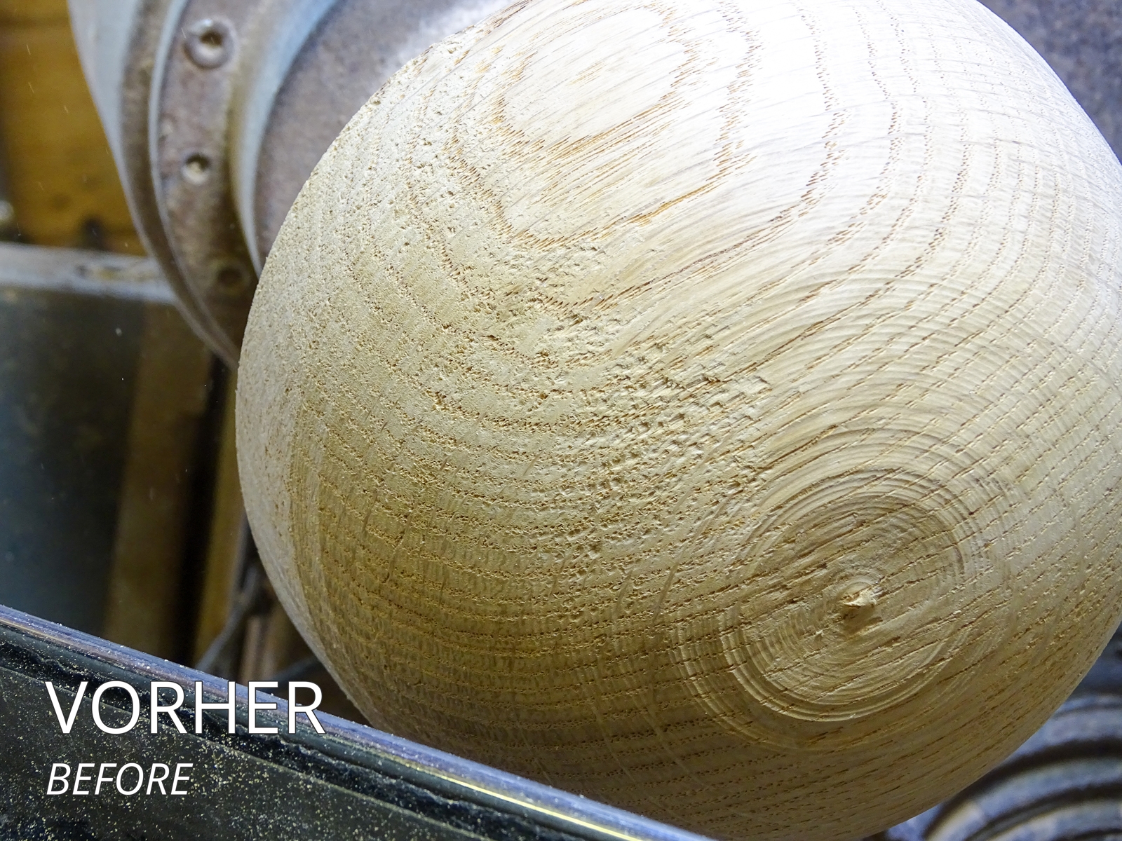 Durch das Entfernen hoher Stellen und Ausrissen werden glatte Kurven, fließende Linien geschaffen und die Holzfasern geöffnet.